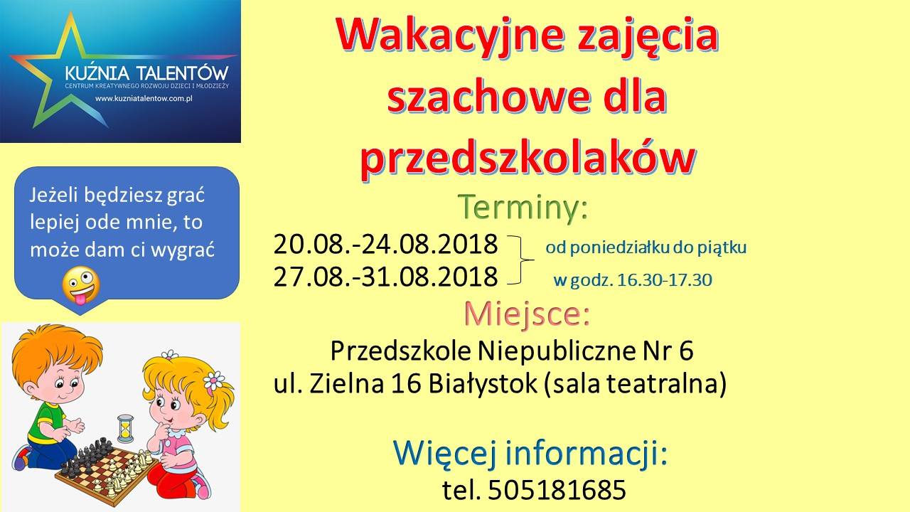 - grupie szachowej, której zajęcia odbywają się we wtorki i czwartki w godz. 17.00-18.00 w Przedszkolu Niepublicznym Nr 6 w Białymstoku